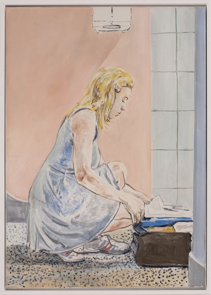 Dit werk is ontstaan na het zien van een film met de titel: Take me somewhere nice. Het is een jonge vrouw die aan het inpakken is om op reis te gaan. Ik werd geïnspireerd door de kleuren en het beeld.