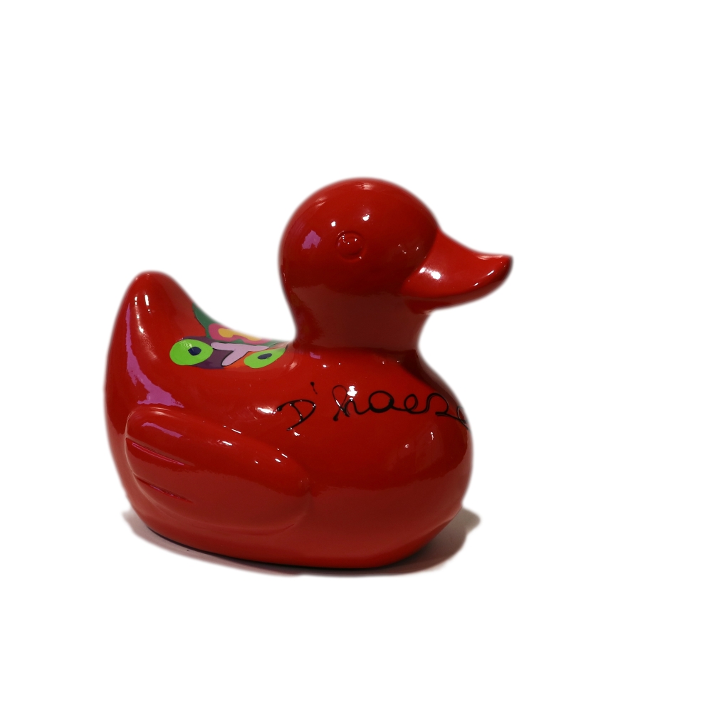 Deze sculptuur werd uniek met de hand beschilderd door Hannes D'Haese. Nadien afgewerkt met een vernislaag zodat deze waterbestendig is. Met certificaat uitgegeven door de Hannes D'Haese shop. In nieuwstaat. Deze sculpturen zijn een verwijzing naar de publieke installatie die Hannes D'Haese uitvoerde voor de gemeente Middelkerke. Meer info op https://www.middelkerke.be/en/sunny-day-paradise