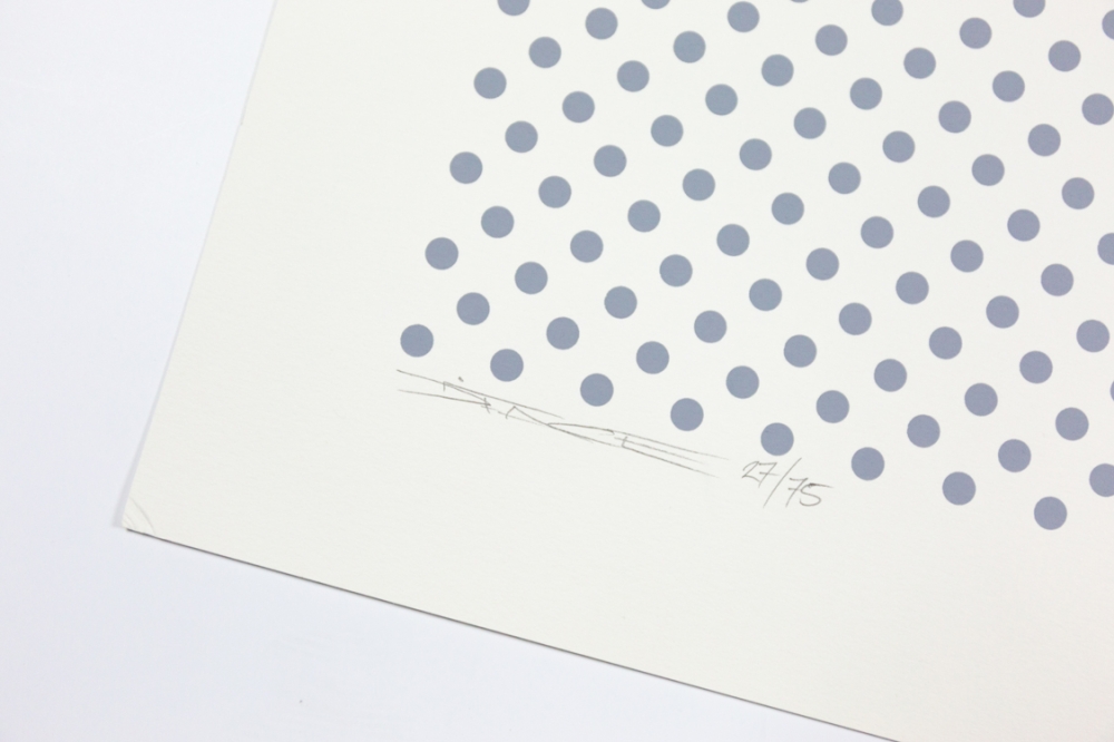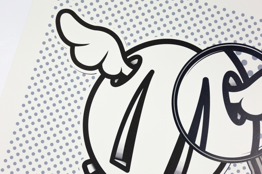 Dit werk meet 70cm, bevat de handtekening en dieprdrukstempel van D*Face.