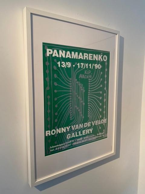 Deze tentoonstellingsaffiche is uitgegeven ter gelegenheid van de expositie Kip Archai in gallery Ronny Van de Velde. De affiche meet 51 x 47,5 cm en is inglelijst in een witte kader. De kader is zonder glas maar wel een plexi plaatje.