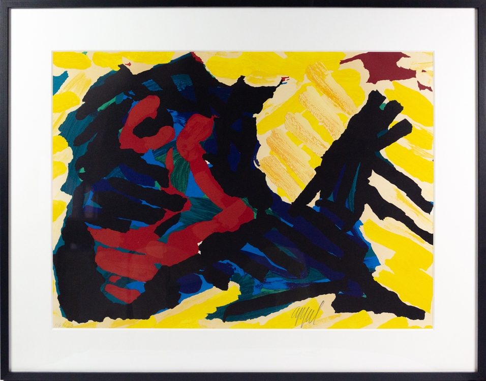 Zeefdruk van Karel Appel uit 1978. Het werk is met de hand gesigneerd en genummerd op 160 exemplaren. Dit stuk heeft nummer 116.