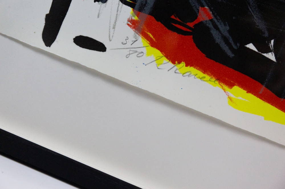 Ingelijst in witte kader met UV-werend glas. Het werk is in uitstekende staat en wordt afgeleverd met een certificaat van art-gallery.be.