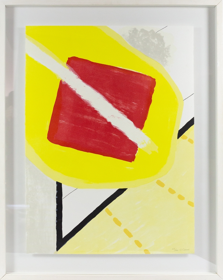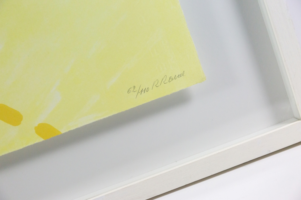 Zeefdruk van Roger Raveel, met de hand gesigneerd en gelimiteerd op 110 exemplaren. Zeefdruk werd uitgegeven door de Vereniging voor het Museum van Hedendaagse Kunst in 1979 (later "De vrienden van het SMAK").