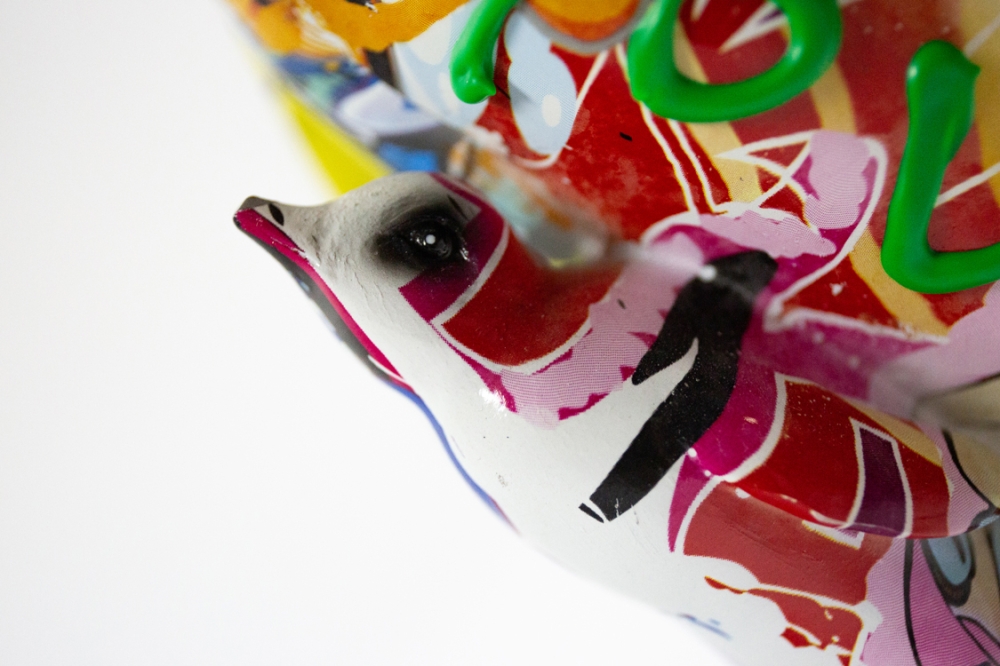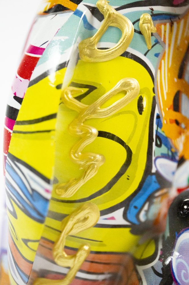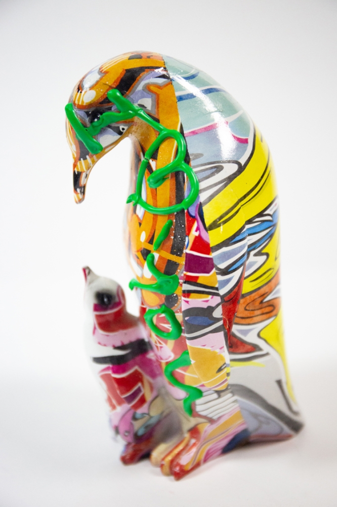 Sculptuurtje van Hannes D'Haese uit kunsthars. Met de hand gesigneerd en voorzien van opschrift in acrylverf: "I [heart] you".