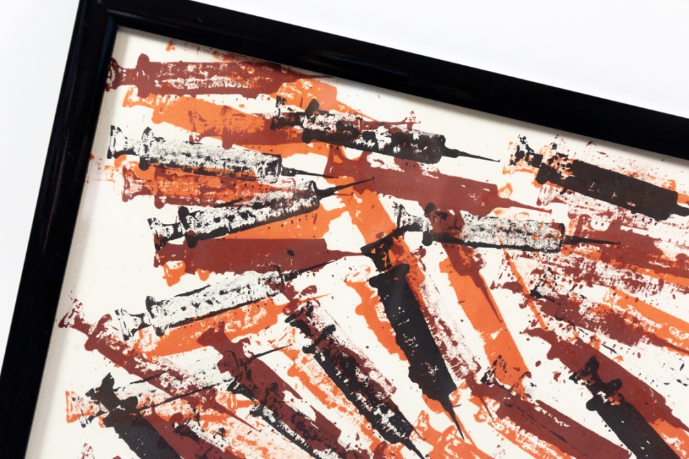 Lithographie van Arman uit 1977. Arman maakte vaak gebruik van duplicaten van objecten om zijn beeld te vormen.