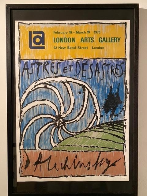 Fraaie affichelitho van Pierre ALECHINSKY -voor de tentoonstelling van Astres et Désastres, 1970 in The London Arts Gallery Gesigneerd in de plaat en in perfecte staat. Het werk is ingelijst. Lijst in zeer goede staat. Hier en daar wat bijkleuren indien gewenst.