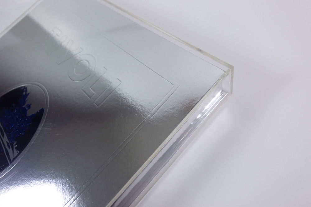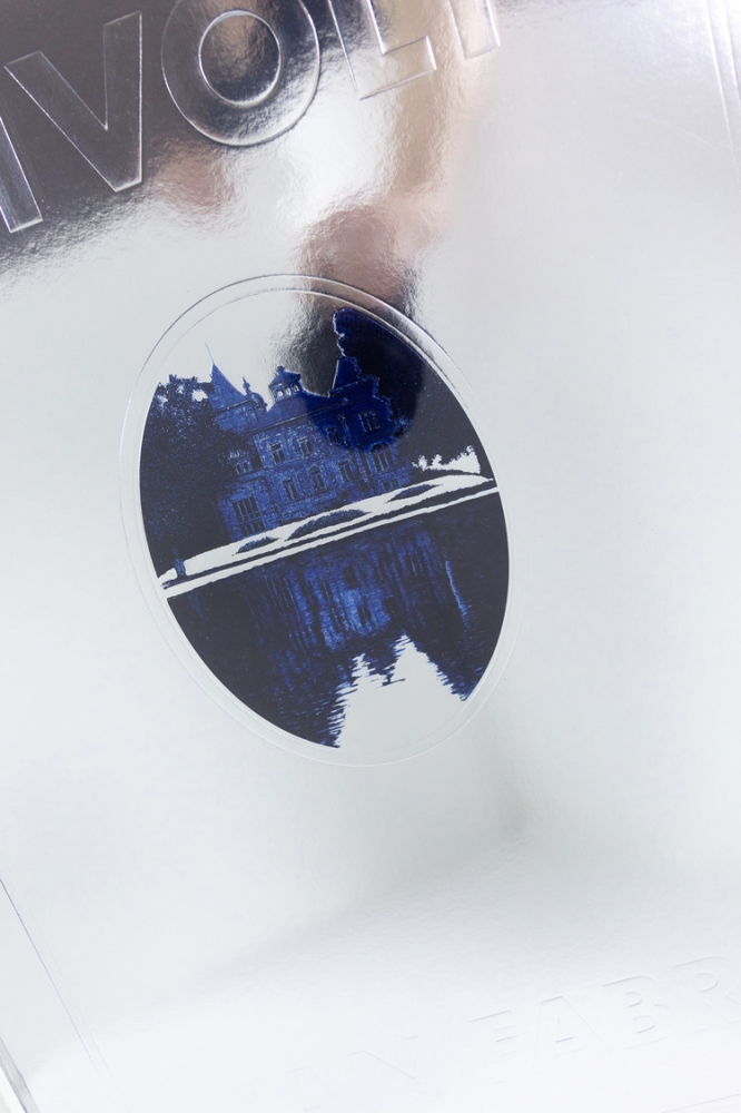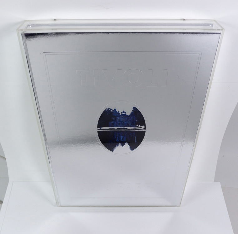 Lege! verzamelmap van de uitgave Tivoli, gelimiteerd op 100 stuks van Jan Fabre uit 1990. Deze map bevatte 7 lithographiën op zilverkleurig kartonpapier. De map heeft dezelfde afwerking als de litho's, een zilvekleurige en spiegelend oppervlak. Op de verzamelmap staat het kasteel en park Tivoli (Mechelen). Het kasteel werd toen in zijn geheel bedekt met blauwe bic balpen tekeningen door Jan Fabre.