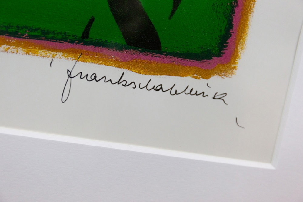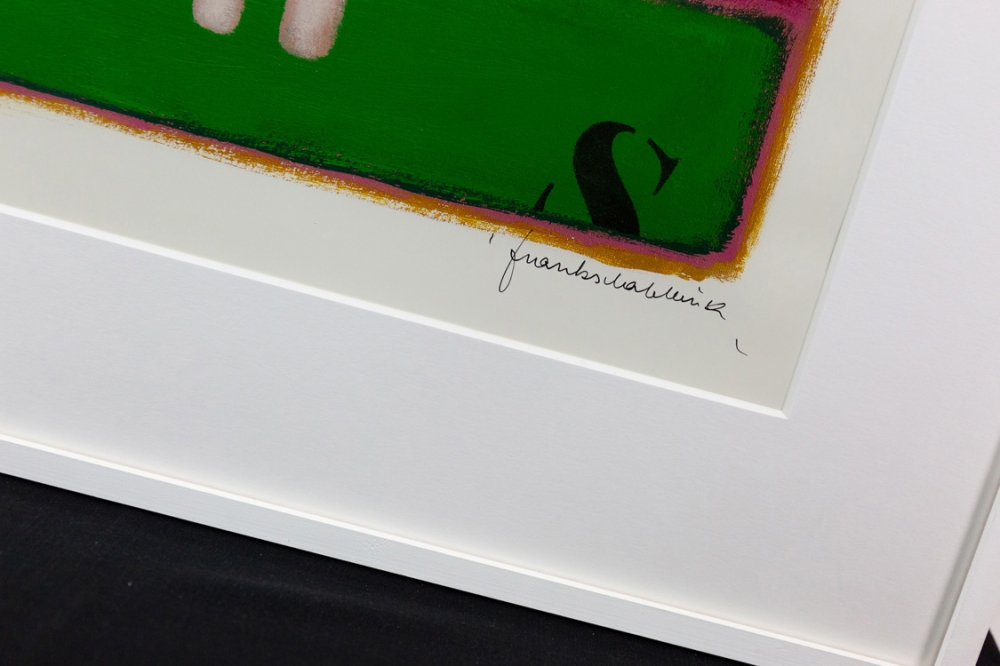 Ingekaderd in een sobere, houten witte kader met uv-werend glas, in uitstekende staat.