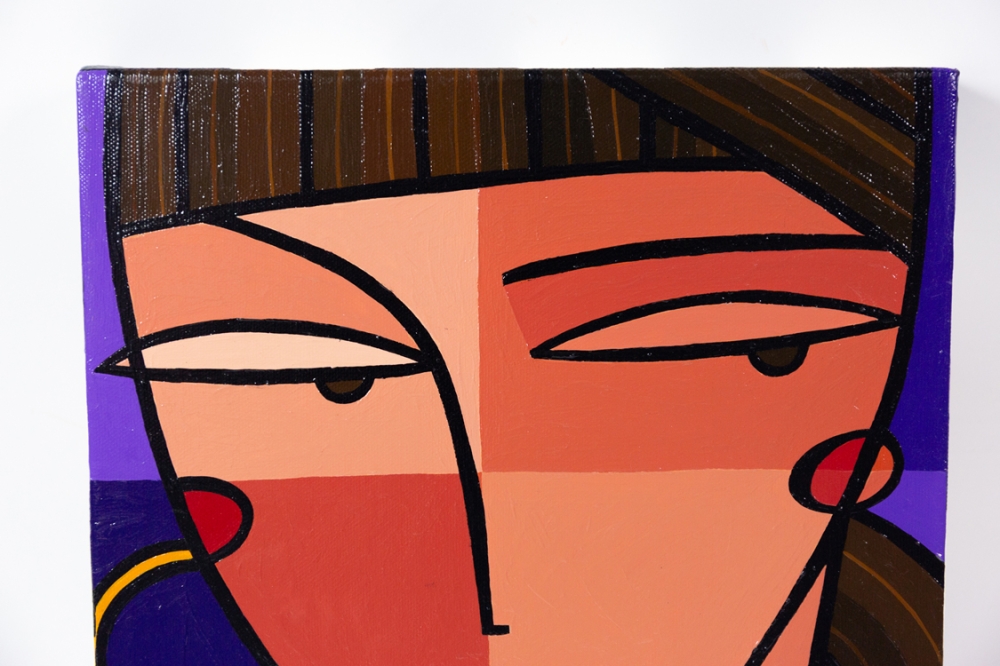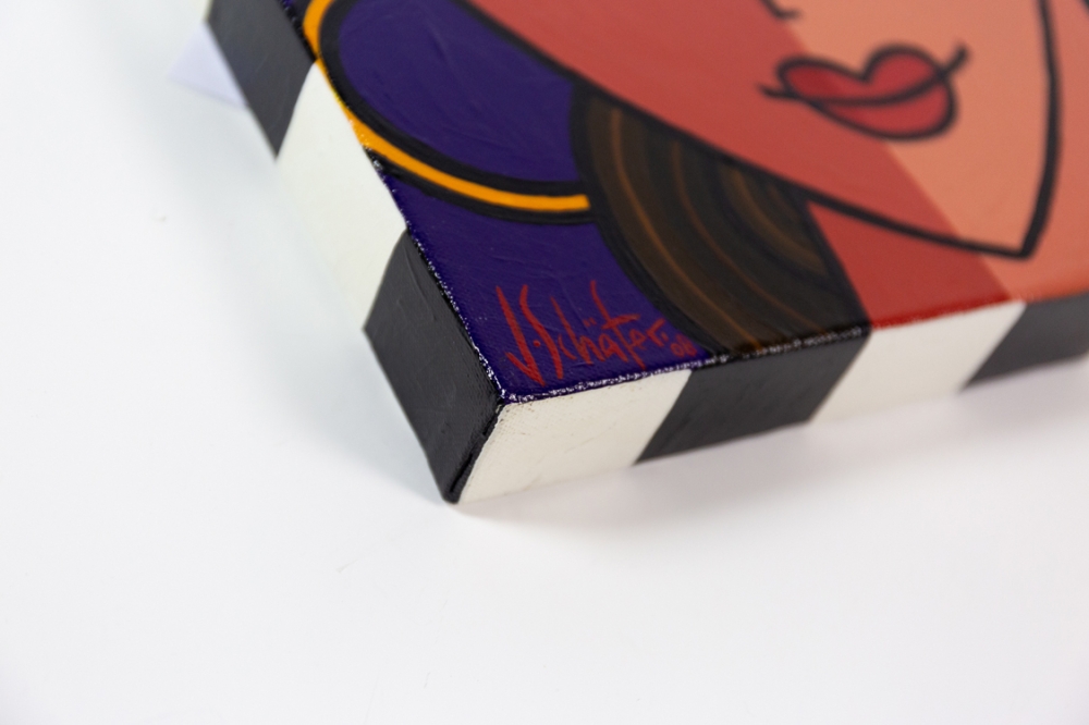 Portret van de Nederlandse kunstenares Jacqueline Schafer, met arcylverf op canvas, in haar eigen stijl. Het werk verkeert in uitstekende staat en is klaar om op te hangen.