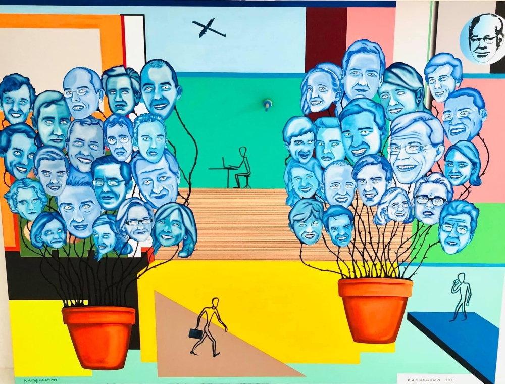 Uniek origineel acrylverfschilderij van Kamagurka, vrij groot van formaat. Het werk is met de hand gesigneerd en in uitstekende staat.