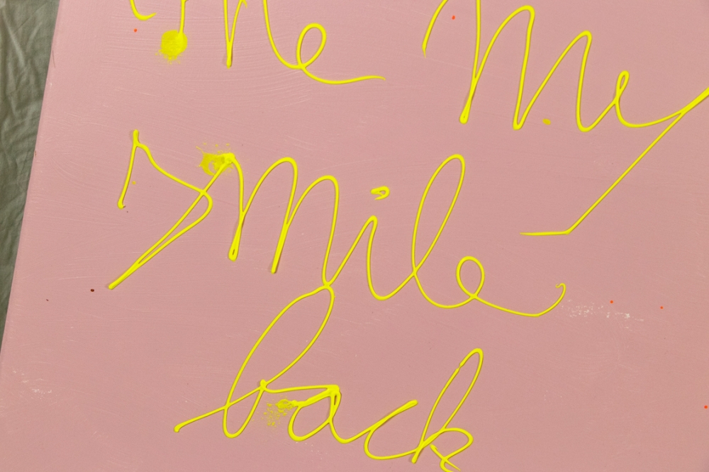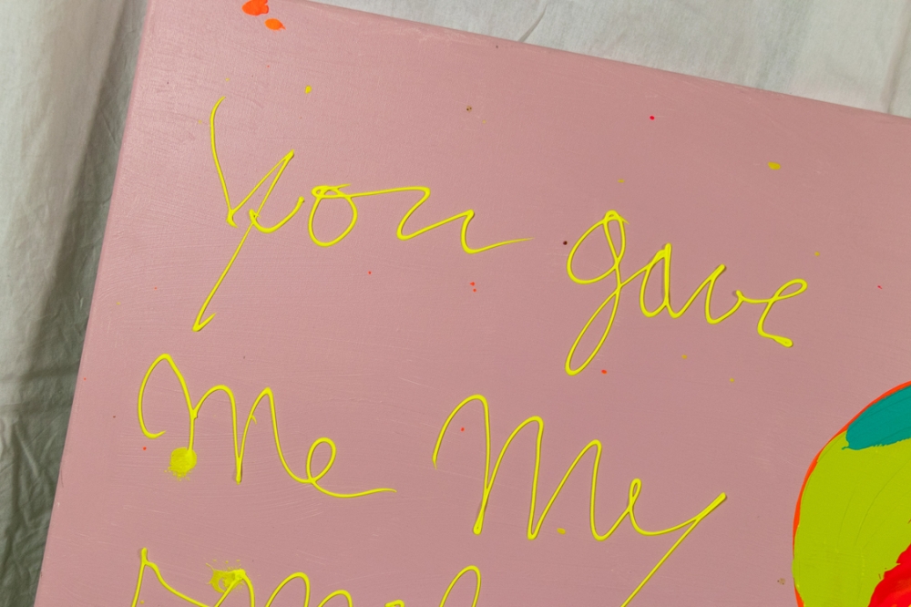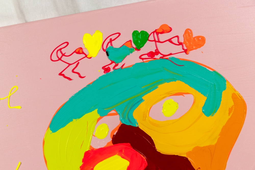 Acrylverf schilderij van Hannes D'haese met als opschrift: "You gave me my smile". Zeer kleurrijk.