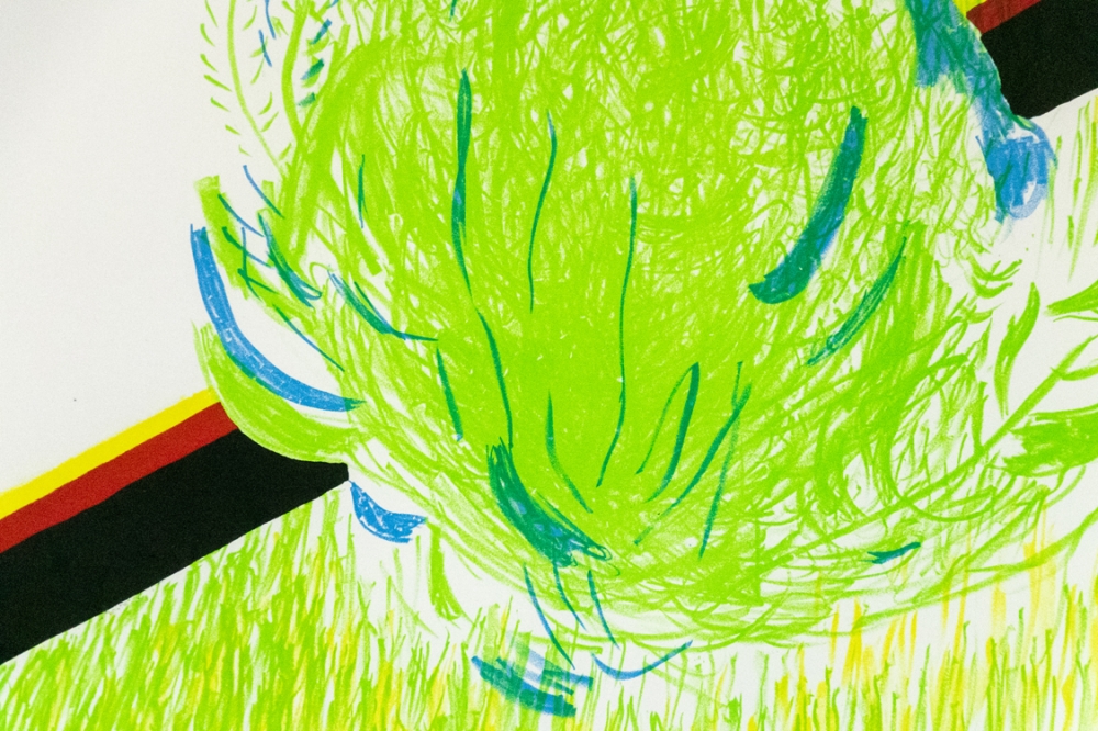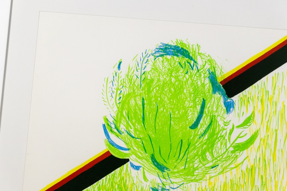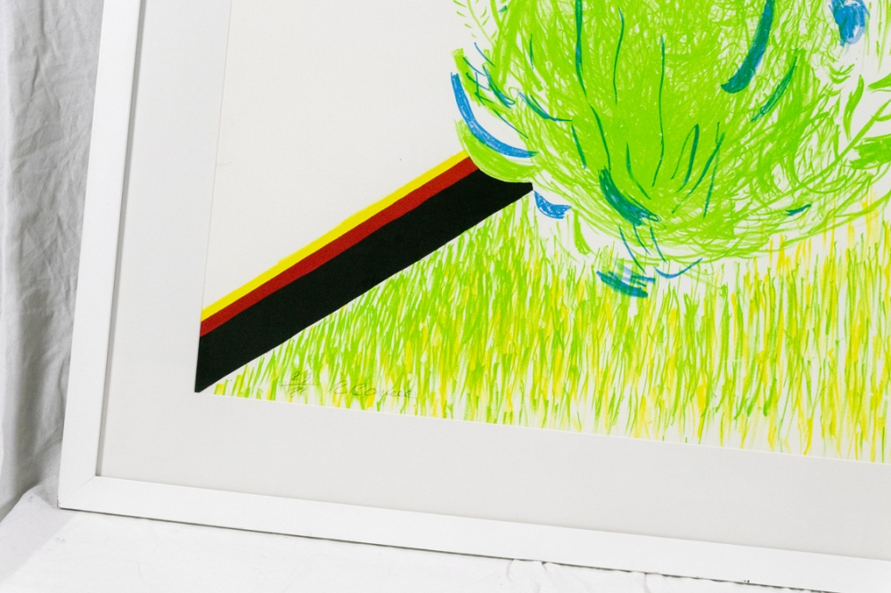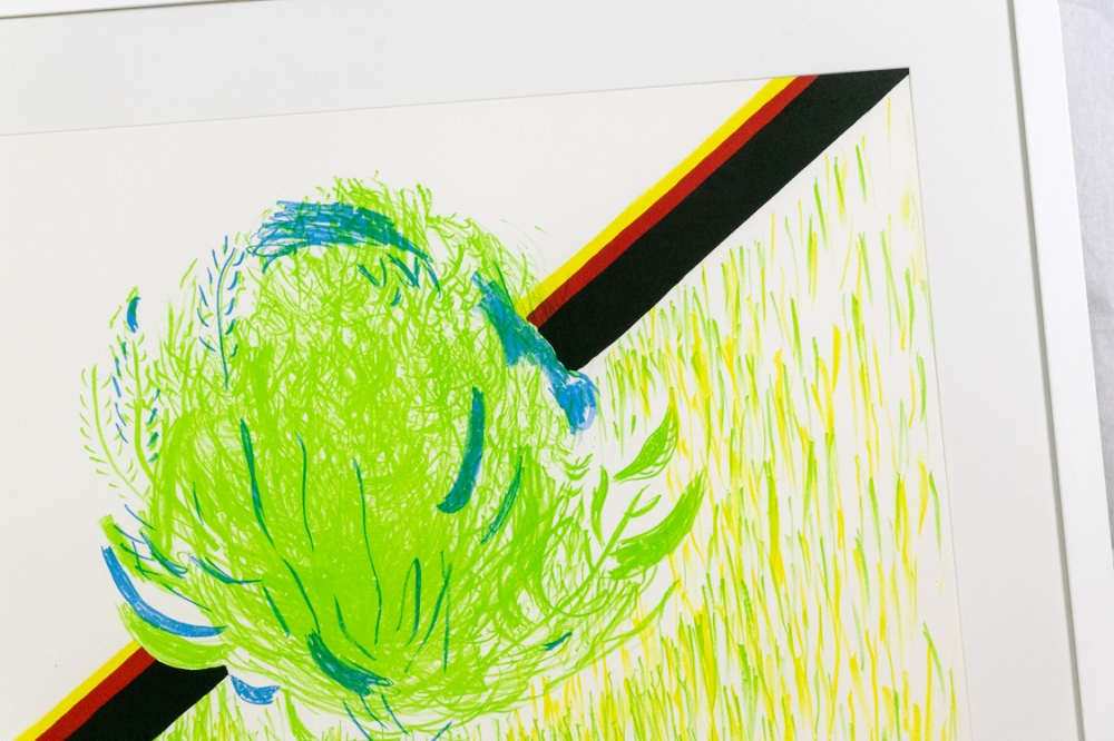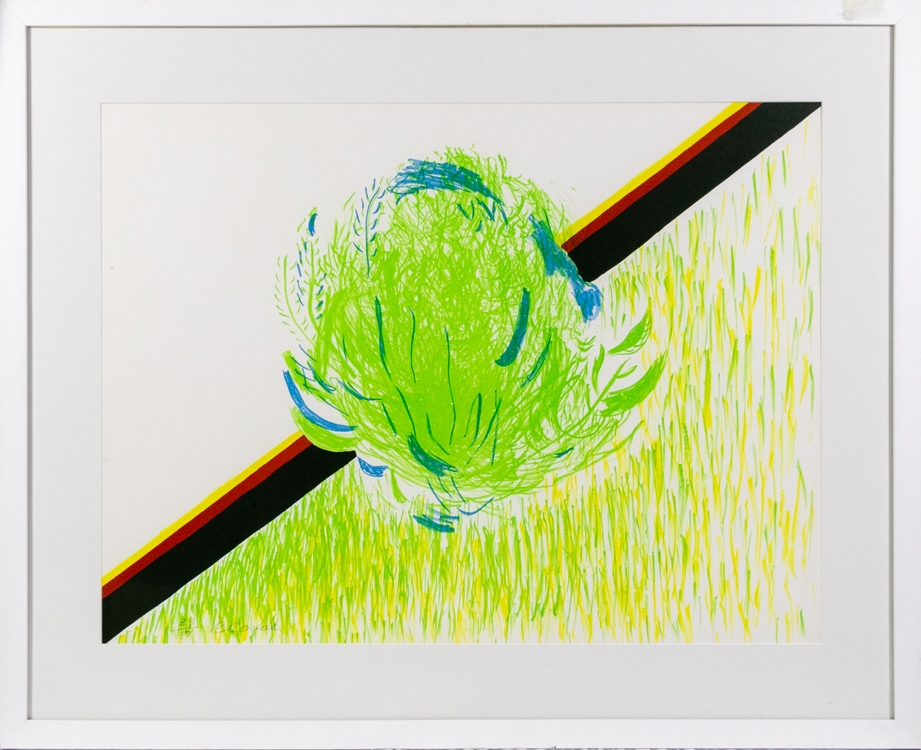 6de werk uit de reeks Genesis van Roger Raveel. Gesigneerd en genummerd, kleine oplage slechts 80 exemplaren. Zie grafische oeuvre pagina 39. Dit is volgens Roger Raveel één van zijn betere werken. Eén exemplaar is ook permanent te zien in het Raveel museum.