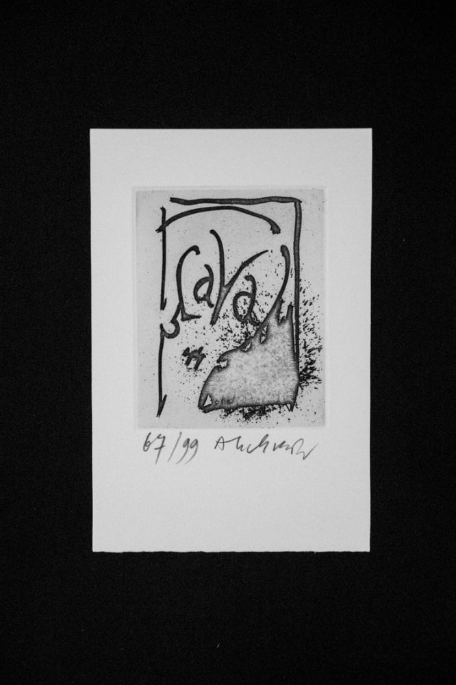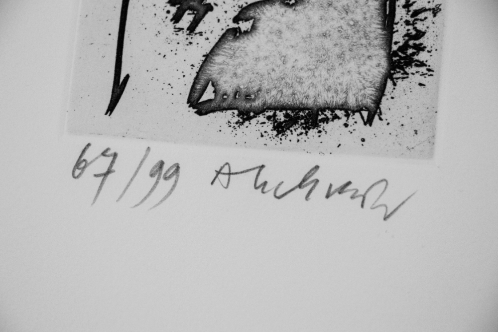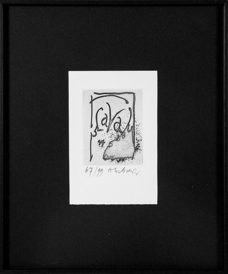 Ets van Pierre Alechinsky uit 2013, getiteld "Homère est morte". Met de hand gesigneerd en genummerd.