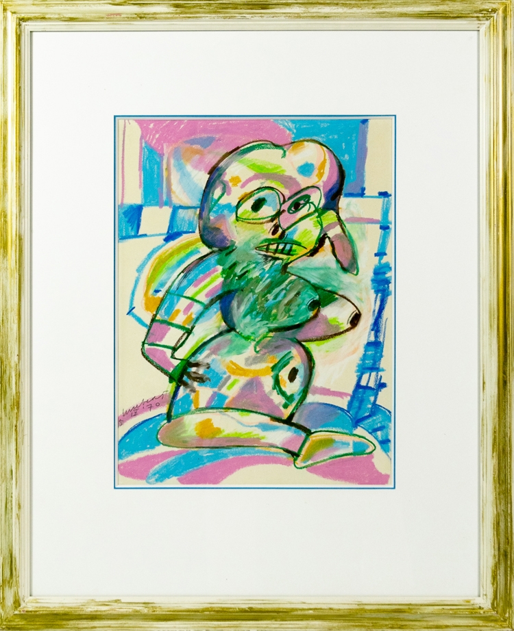 Gouache van Lucebert, gesigneerd en gedateerd in grijs potlood 'Lucebert 5 IX 70'