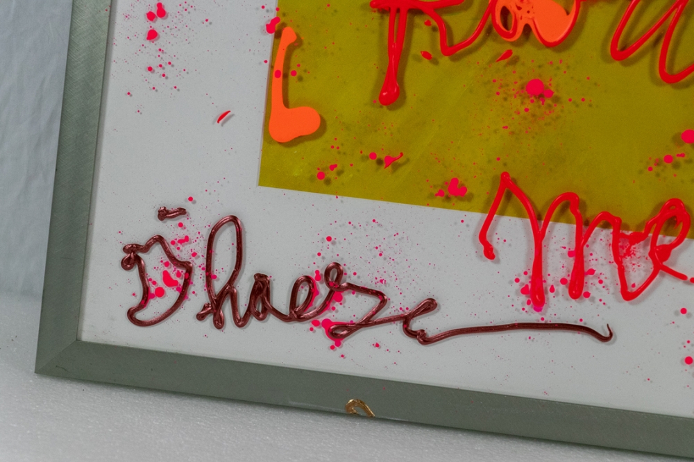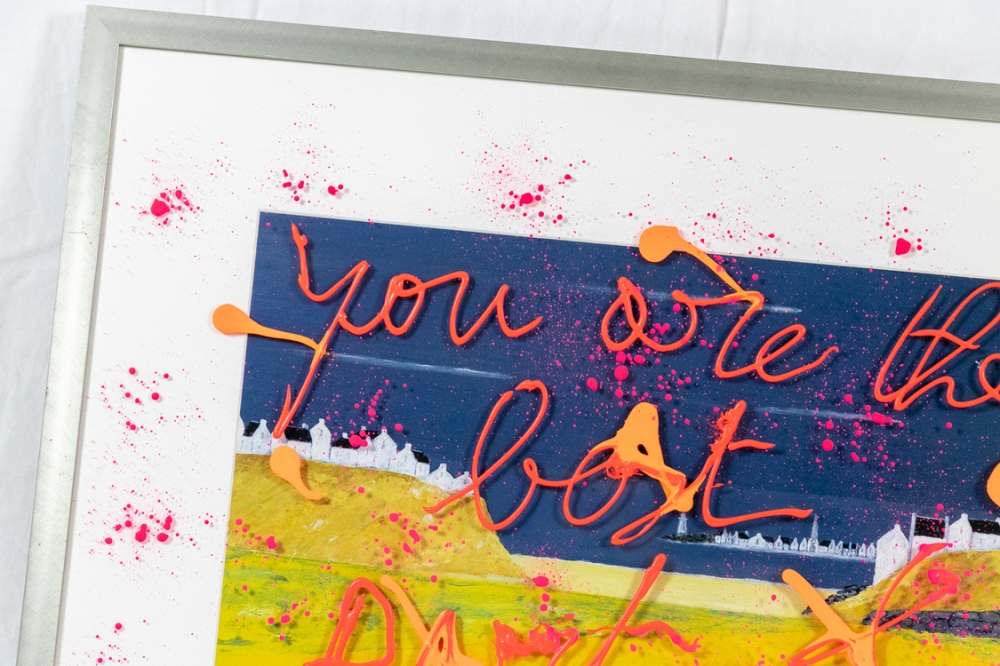Schilderij met acrylverf op glas, van de inlijsting van een ander werk. Het opschrift luidt: "You are the best part of me".