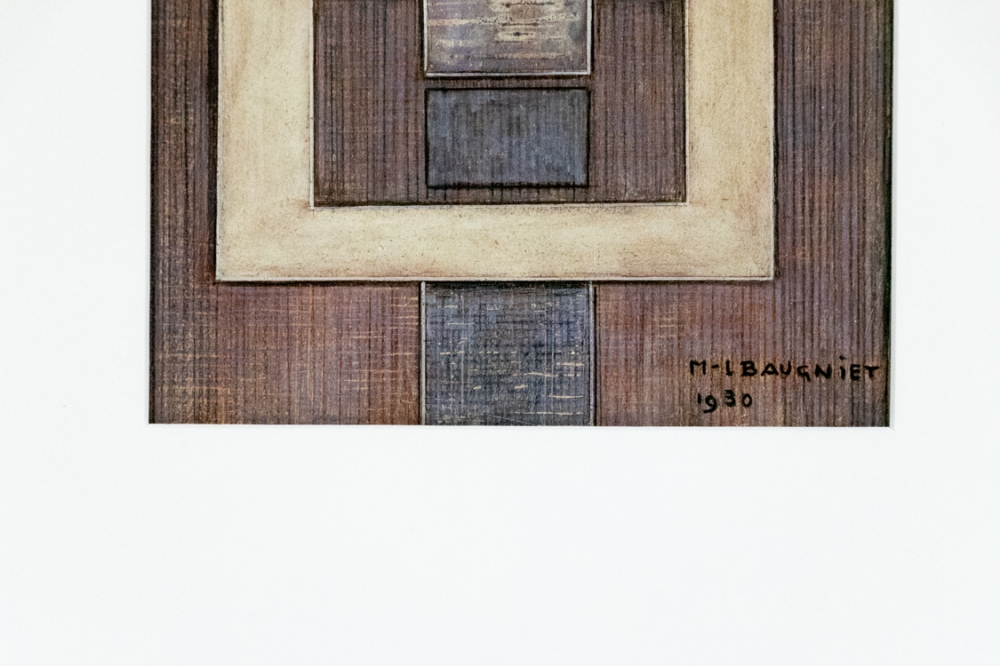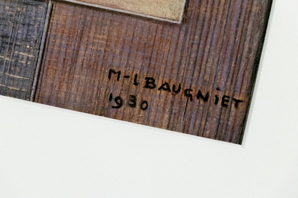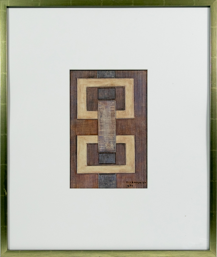 Mixed media kunstwerk van Marcel Baugniet uit 1930 op papier. We merken potlood en verf (vermoedelijk olieverf) op.