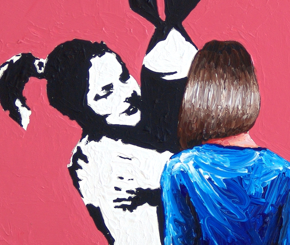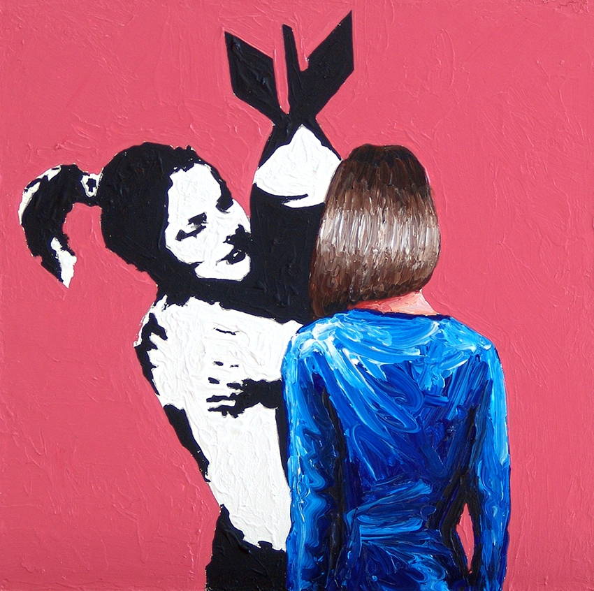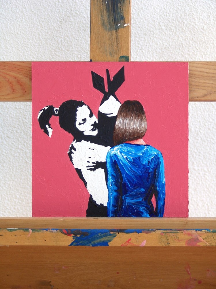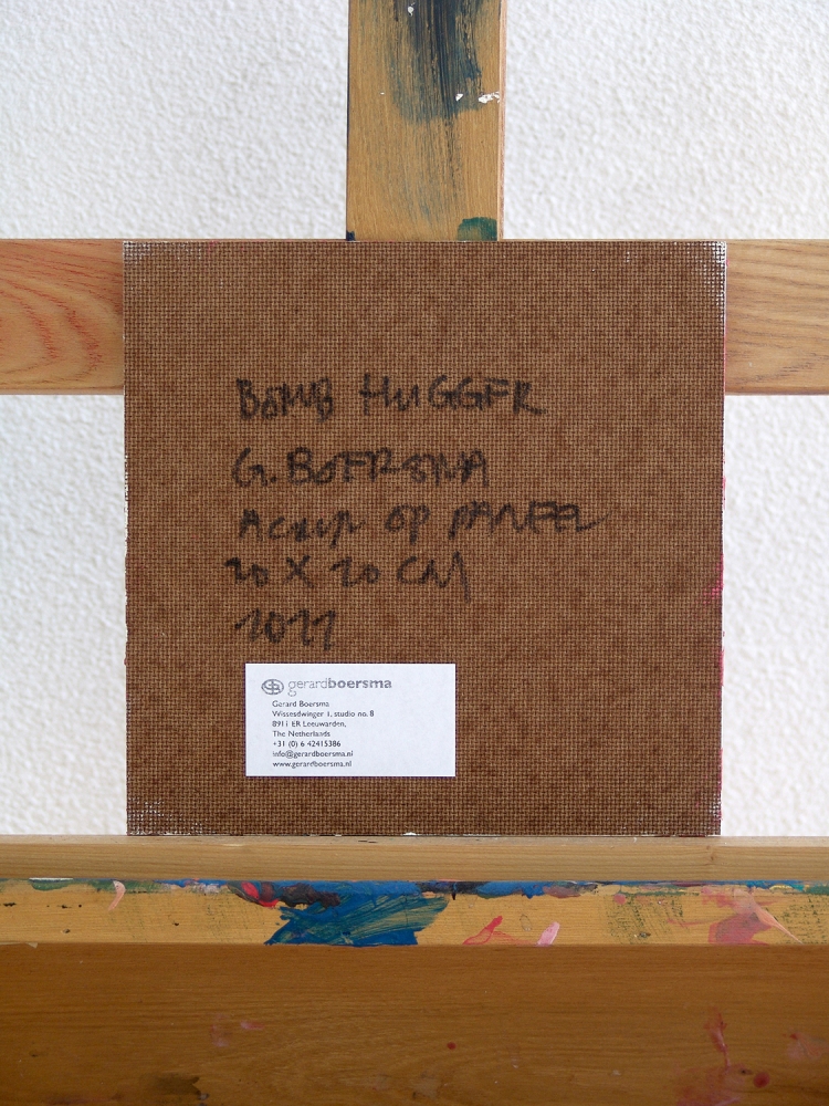 Gerard Boersma staat bekend om zijn schilderijen van mensen die naar bekende schilderijen kijken in musea. Dit werk van 20 x 20 cm toont een vrouw kijkend naar een schilderij van Banksy. Het werk dateert uit 2022 en is gemaakt met acryl op masonite. Gesigneerd op achterkant. Het schilderij is voorzien van een label van de kunstenaar en wordt geleverd met certificaat van echtheid. Over de kunstenaar: Gerard Boersma werkt al 20 jaar als internationaal schilder en staat bekend om zijn eigen stijl van realistisch schilderen. Zijn schilderijen worden wereldwijd verzameld (6 continenten, 30 landen). In 2018 toonde hij zijn werk samen met Warhol, Haring, Banksy en anderen op een groepstentoonstelling bij zijn galerie in Frankrijk. Hij woont en werkt in Leeuwarden, Nederland.