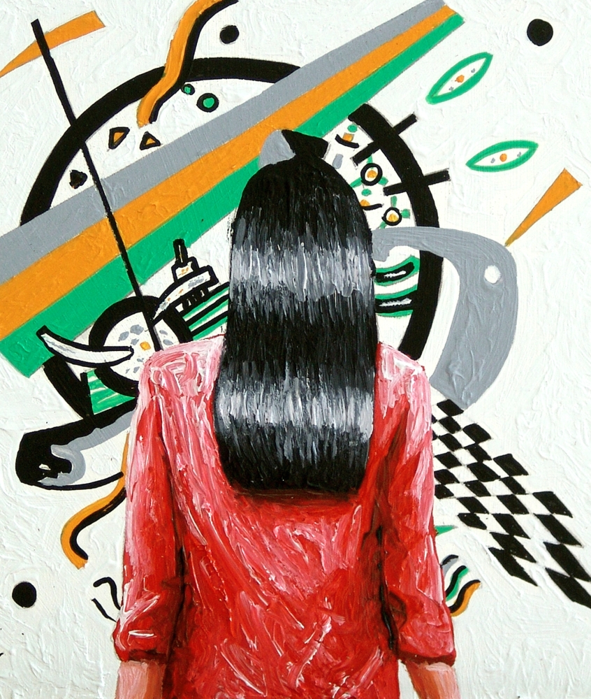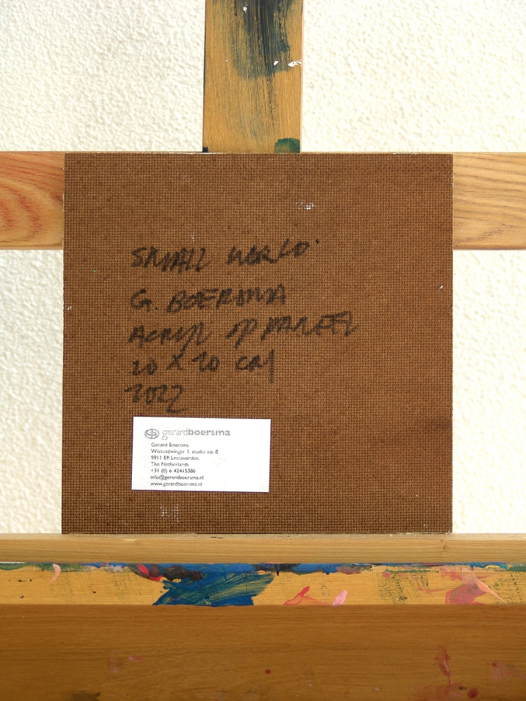 Gerard Boersma staat bekend om zijn schilderijen van mensen die naar bekende schilderijen kijken in musea. Dit werk van 20 x 20 cm toont een vrouw kijkend naar een schilderij van Wassily Kandinsky. Het werk dateert uit 2021 en is gemaakt met acryl op paneel (masonite). Gesigneerd op achterkant. Het schilderij is voorzien van een label van de kunstenaar en wordt geleverd met certificaat van echtheid. Over de kunstenaar: Gerard Boersma werkt al 20 jaar als internationaal schilder en staat bekend om zijn eigen stijl van realistisch schilderen. Zijn schilderijen worden wereldwijd verzameld (6 continenten, 30 landen). In 2018 toonde hij zijn werk samen met Warhol, Haring, Banksy en anderen op een groepstentoonstelling bij zijn galerie in Frankrijk. Hij woont en werkt in Leeuwarden, Nederland