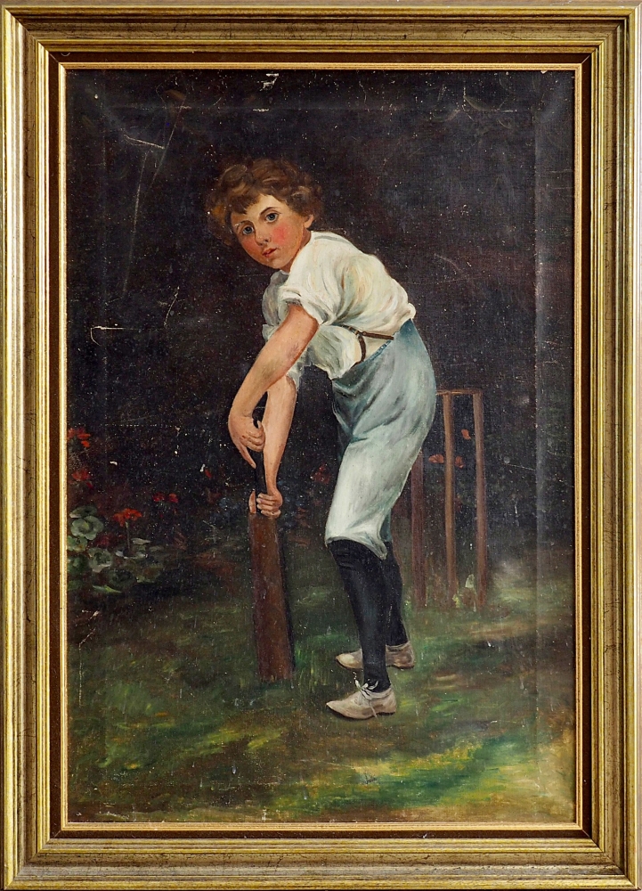 Schilderij van de kapitein van de criquetploeg. Dit werk is een kopie van de originele schilderij van Calderon uit 1882 formaat 153x94 cm. Deze kopie is waarschijnlijk het werk van de Nederlandse schilder A. van der Haagen waarvan een kopie aangeboden werd aan 382 euro. Deze kopie is licht beschadigd omdat de inkadering niet goed is uitgevoerd.