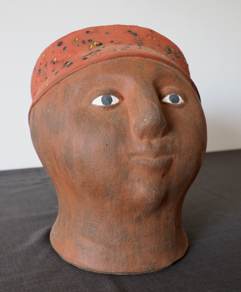 Dit werk toont een hoofd met hoofddeksel in bruinrode tinten. In dit werk zijn de Pre Columbiaanse invloeden duidelijk merkbaar. Vele werken van haar zijn zowel in bezit van openbare instellingen als in privébezit. Odile organiseert jaarlijks opendeurdagen in haar eigen tuin. Met een mix van buxussen bloemen en haar beelden is een bezoek een absolute aanrader.