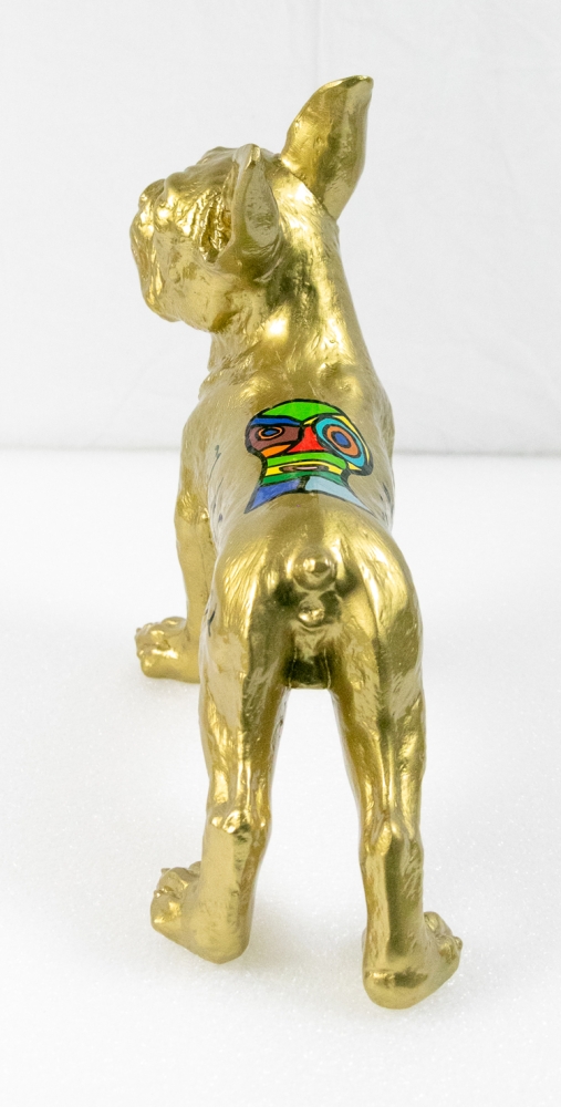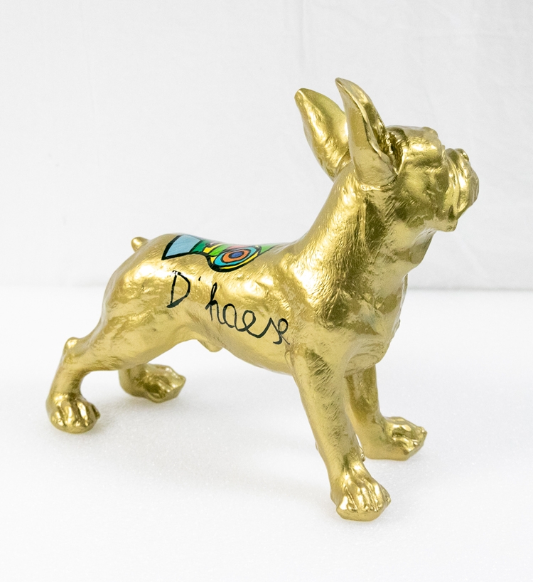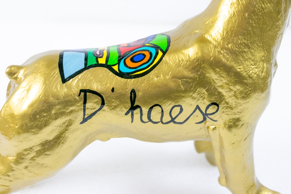 Sculptuur uit kunsthars met gouden afwerking, beschildering op de achterkant van Hannes D'Haese, met de hand gesigneerd.