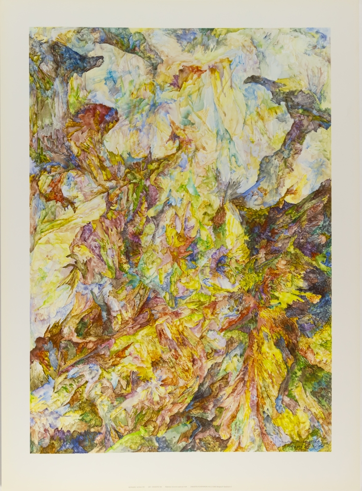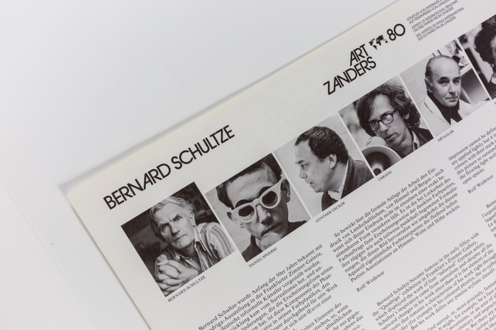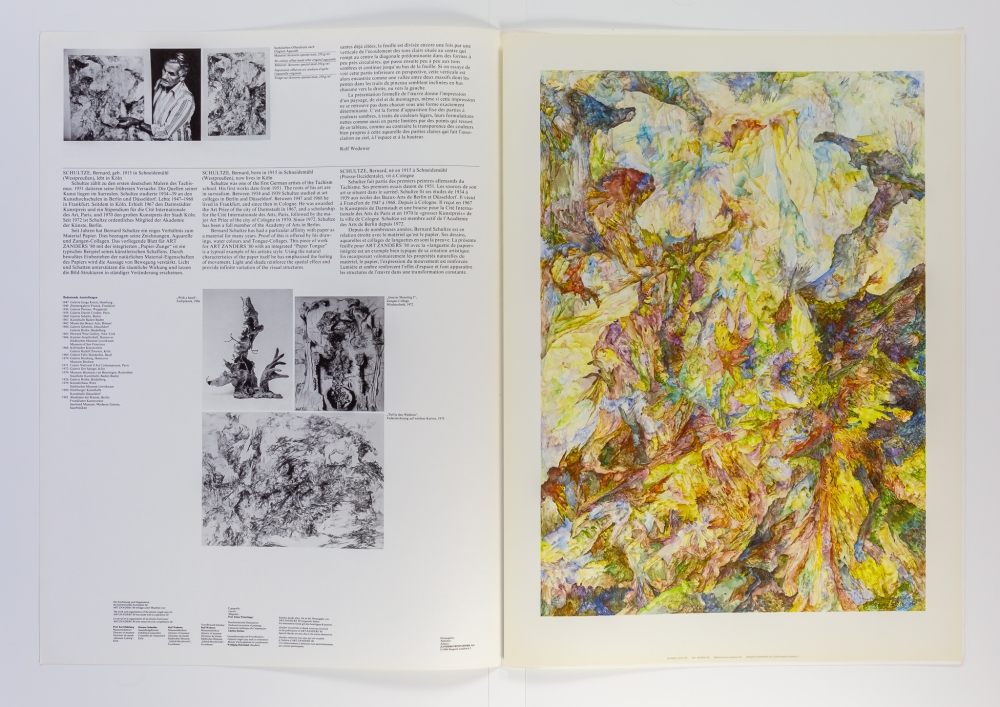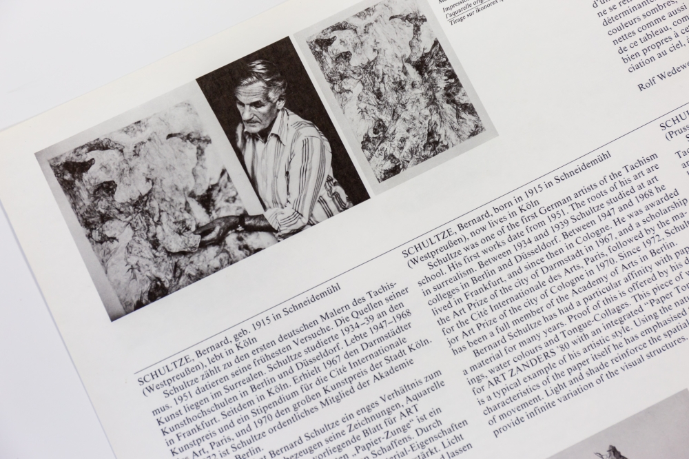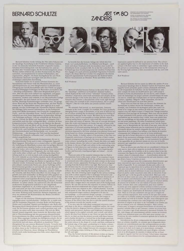 Originele kaft met zes kleuren offset gemaakt na het originele aquarel voor Art Zanders '80 op ikonorex special-matt 250g/m². Dit werk behoort tot zijn "tong"-collages en is typerend voor zijn artistische stijl. Door gebruik te maken van de natuurlijke karakteristieken van het papier-medium benadrukt hij het gevoel van beweging.