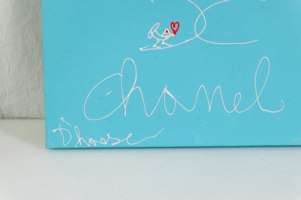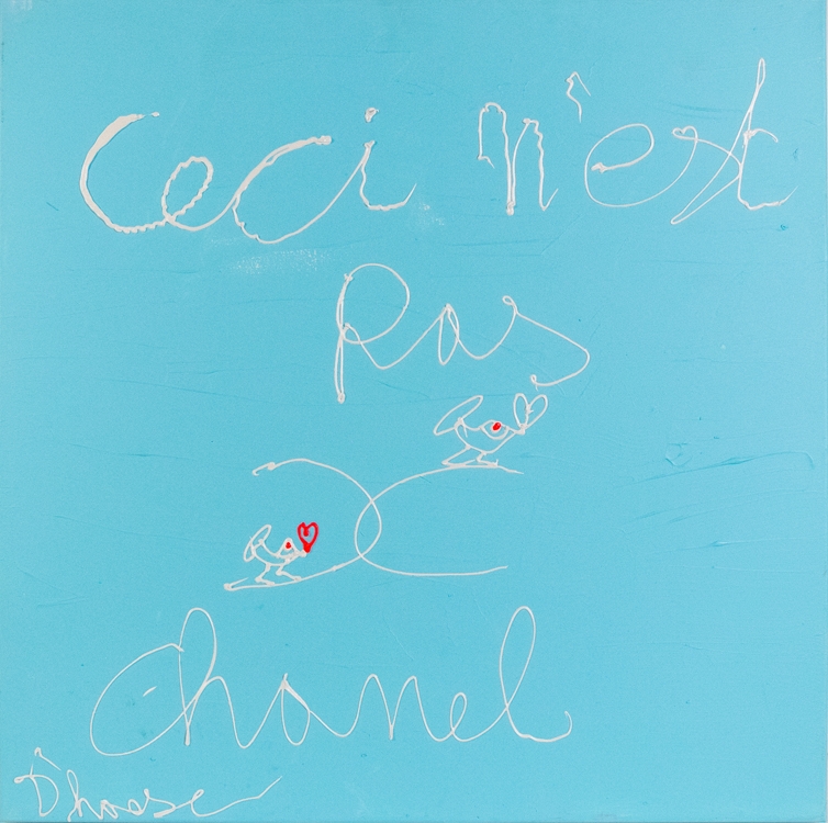 Schilderij met acrylverf van Hannes D'Haese. Heeft als opschrift: "Ceci n'est pas chanel".