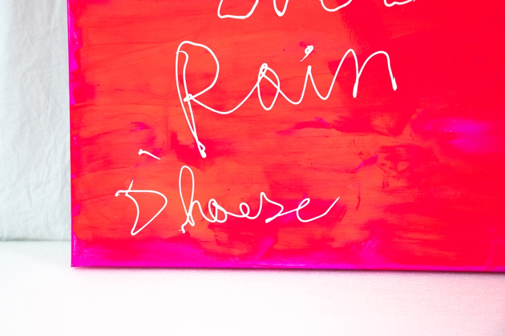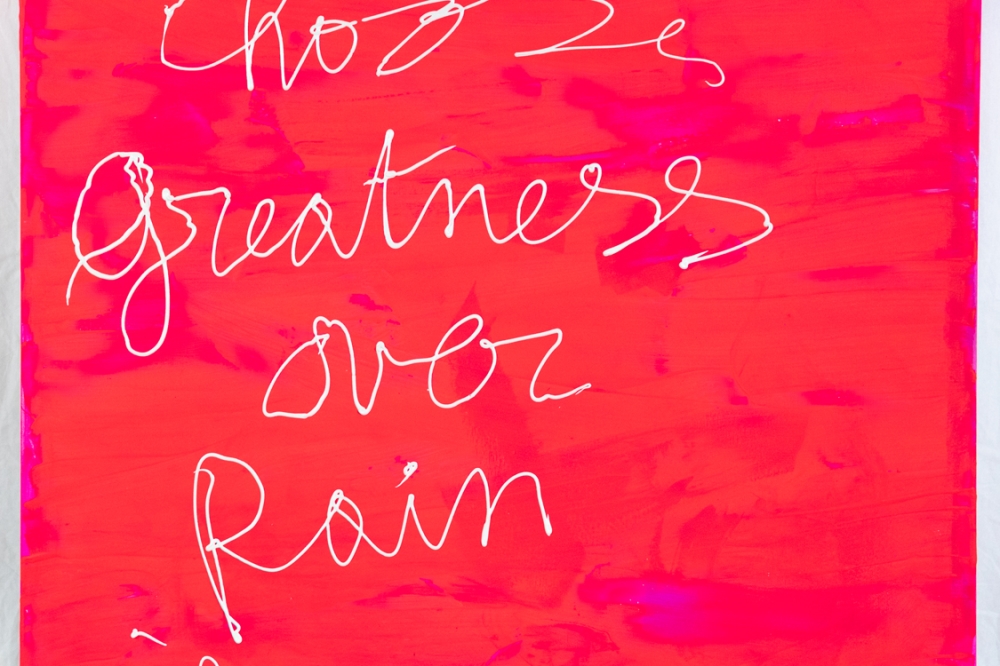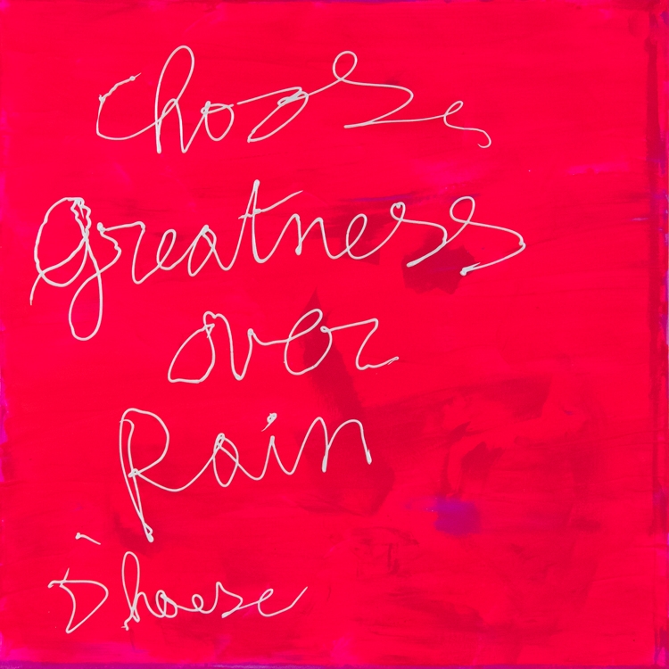 Schilderij met acrylverf op canvas van Hannes D'Haese. Heeft als opschrift: "Choose greatness over pain".