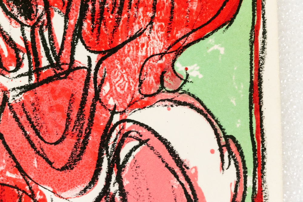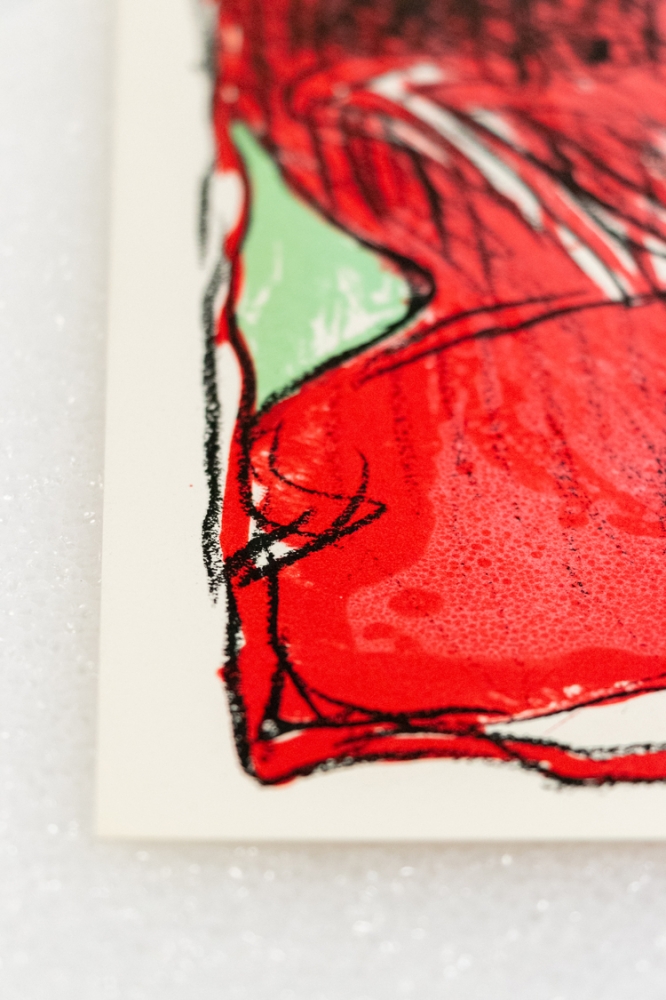 Lithografie van Pierre Alechinsky uit 1978. Met de hand gesigneerd en genummerd door de kunstenaar. De Schismes suite bevatte 4 litho's, dit is er één van. Gedrukt door Clot, Bramsen et Georges.