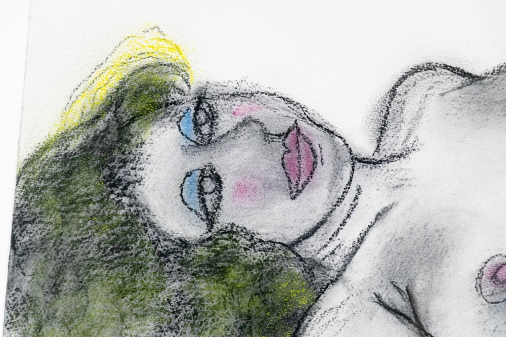 Originele, unieke houtskooltekening van Corneille, getiteld als Ellen en gedateerd op 27 Juli 1993.