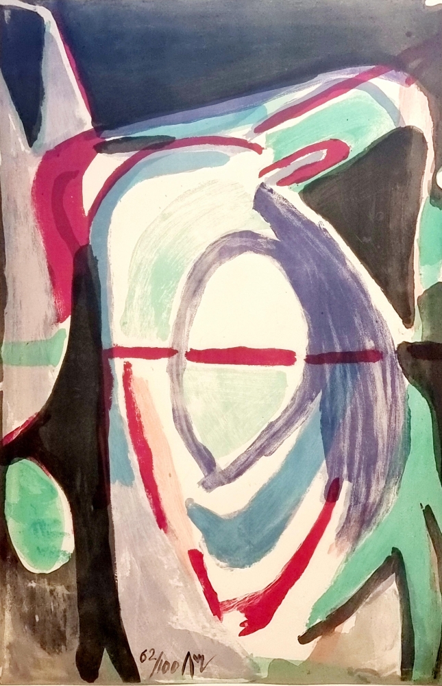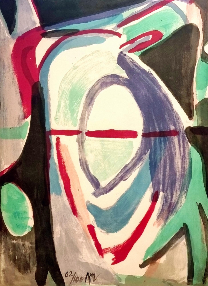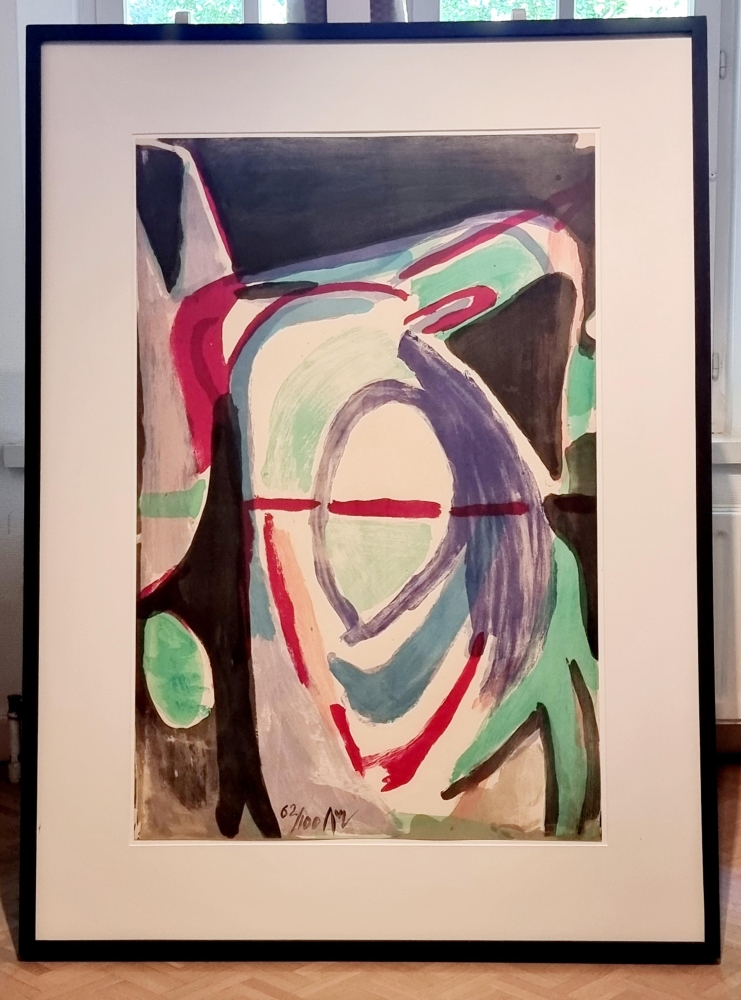 Prachtige Kleurenlithographie op Arches paper van Bram Van Velde, gesigneerd en genummerd in paintbrush