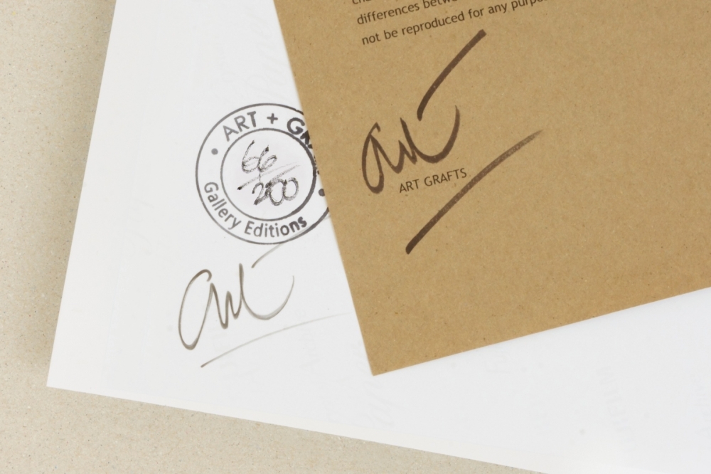 ● 'Fish Can' & 'Fish Can't' zijn wrange opmerkingen over de toestand van de wereldwijde voedselindustrie - alternatieve fabrieksverse vismaaltijden voor het digitale tijdperk, waarvan de voorbereiding bijna twintig jaar duurde! ● De foto van het sardineblikje is begin jaren negentig in het Verenigd Koninkrijk op goede ouderwetse film genomen en de vissen zijn in 2011 in Thailand digitaal 'gevangen'. ● De twee afbeeldingen waren in hetzelfde jaar gelukkig getrouwd in een computer en zijn nog steeds samen. ● Twee 15 "x 12" chromogene prints Afbeeldingsformaten 13" x 9½" (33 x 24 cm) Afdrukformaten 15" x 12" (38 x 30 cm) ● Handtekeningen en genummerde galerijzegels linksonder achteraan ● Getiteld onder afbeelding ● Certificaat van echtheid van de afdruk ● Nieuwstaat ● Schepen gerold in een grote PVC-buis