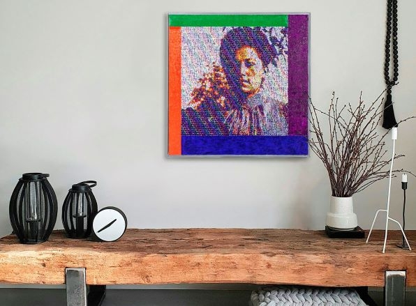 Over de kunstenaar: rik vermeersch Tentoonstellingen sedert 1968 in binnen- en buitenland. België: brugge, kortrijk, gent, deinze, antwerpen, sint-niklaas, oostende, brussel, strombeek, kuurne, mons. Nederland: tilburg, venlo, amsterdam, bergen, leeuwarden, den haag, utrecht, roosendaal, roermond, utrecht, maastricht. Frankrijk: le touquet, mulhouse, saint-yzans-de-medoc. Duitsland: berlijn, munster, keulen, munchen. Zwitserland: langenthal, zurich, bazel, sattel. Rusland: sint-petersburg. Griekenland-paros: parikia. Spanje: torroella de montgri. China: tianjin. ACQUISITIES provenciaal museum voor moderne kunst, oostende museum voor schone kunsten, kortrijk musée des beaux arts, tournai musée lanchelevici, la louvière musée des beaux arts, mons museé des beaux arts, mouscron haags historisch museum, den haag ( nederland ) ministerie van de vlaamse gemeenschap westvlaams economisch studiebureau, brugge a. b. g. s. , minden (duitsland ) chateau cinéma, lomme ( frankrijk ) m.i.a.t., gent dorpsplein, kuurne dorpsplein, meulebeke bibliotheek, moorsele collectie veranneman, kruishoutem ryhovesteen, gent Over het werk: Als reactie op estetiserende van de werkelijkheid vervreemdende kunst begint Rik Vermeersch in 1967 met het tekenen en schilderen van mensen in hun dagdagelijkse verschijning. Zijn onderwerpen haalt hij grotendeels uit tijdschriften en dagbladen waarin hij de mens eerder als object dan als subject bekijkt. Daarbij is het hem louter om de presence te doen. De voor zijn werk zo typerende verdinglijking wordt vanaf dan steeds duidelijker. Alida Staelens - Streuvels 2010 + boek Afmetingen 72x72cm (Opmerking:'foto in decor': de schaal van het werk kan afwijken van de realiteit.)