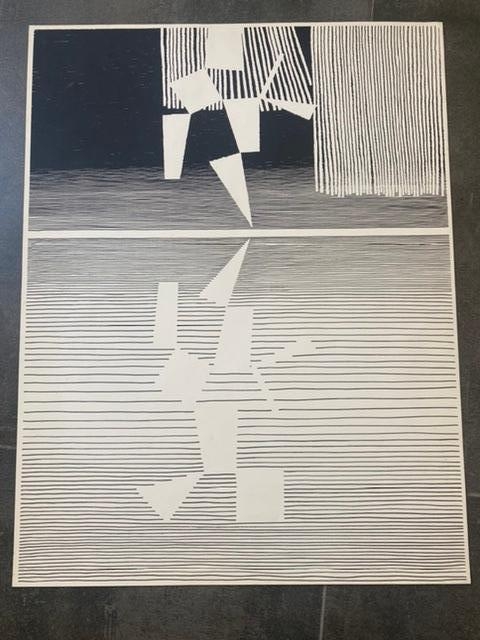 Mooie gesigneerde zeefdruk van Michel Seuphor. Gesigneerd op de keerzijde Michel Seuphor, pseudoniem voor Ferdinand Louis Berckelaers was een Belgische kunstenaar uit de abstracte kunst van voor de Tweede Wereldoorlog, die zowel zelf abstracte kunst maakte als veel publiceerde over de abstracte kunst en zijn kunstenaars