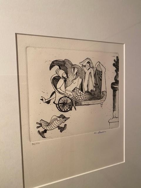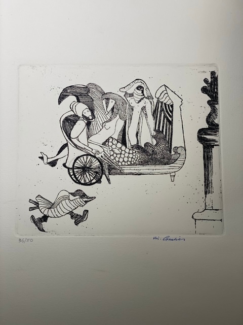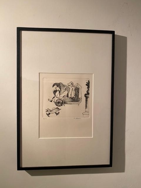 Zeer fraaie ets van de Belgische kunstenaar Vic Gentils. Passend bij de ets is aan beide zijden bedrukt gedicht De ets is los. Met de hand gesigneerd en genummerd. Perfecte staat. Nummer 36 van 50 ex