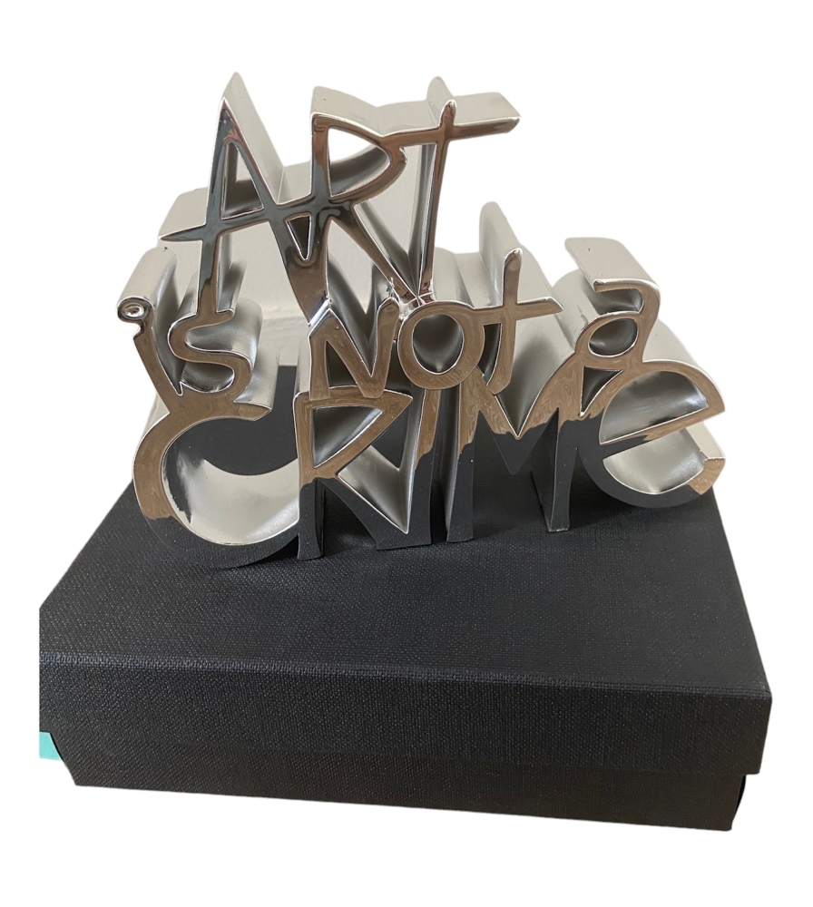Mr Brainwash geboren in 1966 Kunst is geen misdaad (Geld) 2021 met de hand beschilderde hars 6½ h × 8¼ b × 1¾ d in (17 × 21 × 4 cm) Gesigneerd, gedateerd en genummerd Het beeld verkeert in uitstekende staat en zal een fenomenale aanvulling zijn op uw verzameling