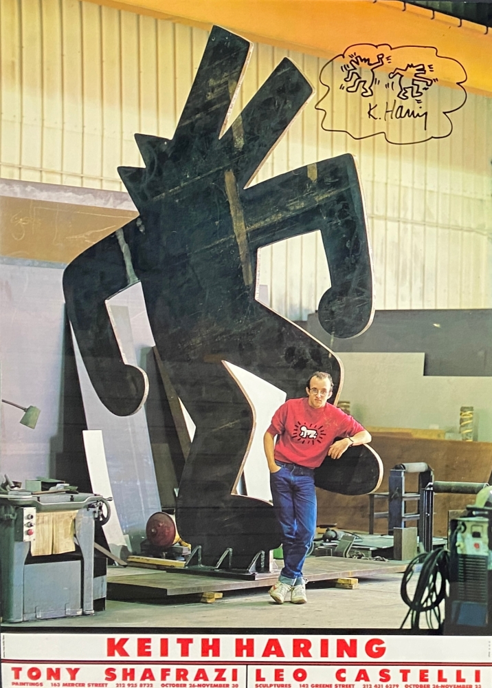 Prachtig affiche voor de Keith Haring tentoonstelling bij Tony Shafrazi en Leo Castelli. Keith Haring heeft een tekening gemaakt voor deze poster. Het werk is ook gesigneerd door de kunstenaar. Professioneel ingelijst.