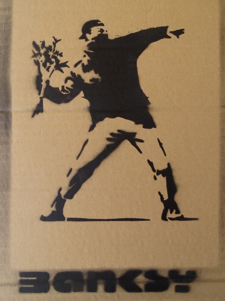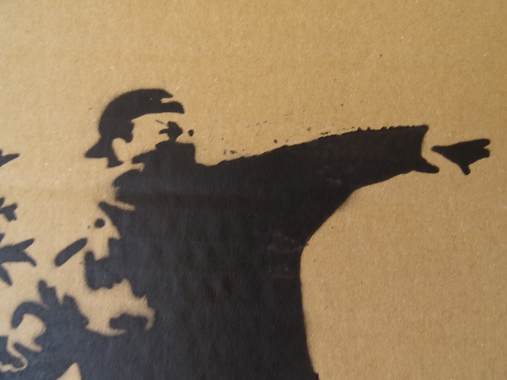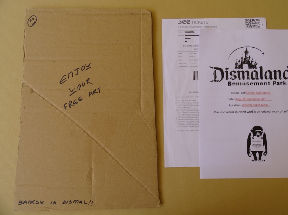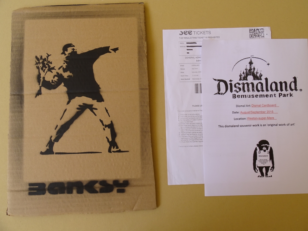 Banksy signed dismaland artwork. Good condition in general Material: cardboard Stencil spray paint from Banksy's theme park "Dismaland" held for two months from August to September 2015. Artist: BANKSY