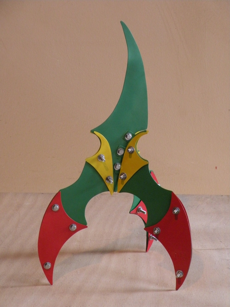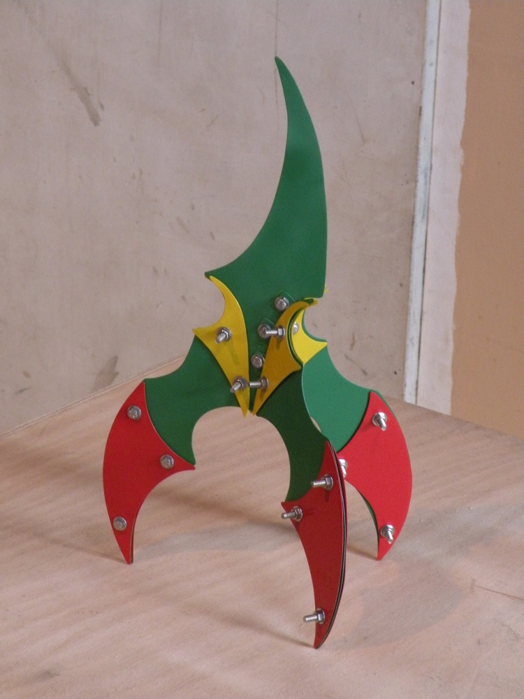 Petite sculpture Formes "épine" en acier peint, réalisée d'après un de mes dessins, formes en feuilles d'acier fines peintes et vernies et assemblées avec boulonnerie inox. Ma dernière famille d'oeuvres imaginée en 2016 et certaines oeuvres réalisées en 2019. Il s'agit de recherches plastiques de lignes et formes élégantes et dynamiques, ce sont des oeuvres d'Art contemporain, à placer dans son intérieur sur une table basse, une étagère, sur un podium ou dans une niche, etc... Au choix de l'amateur d'art.