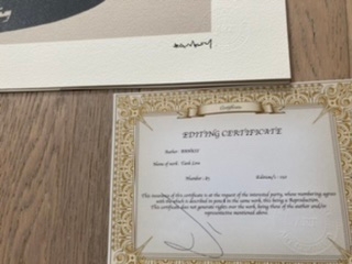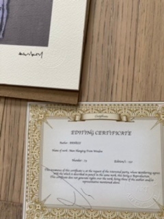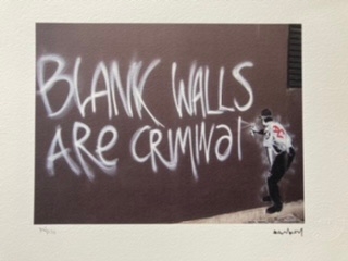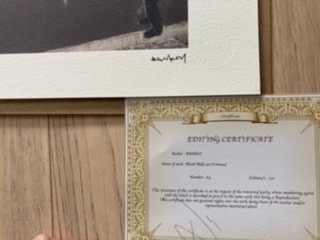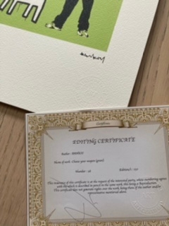 Édition print art certified 28x 38 cm. 5 Lithographies sur beau papier épais Canson 300 g en nr limité à 150 examplaires chaque. Numérotée à la main. Signature sur la planche Banksy Avec certificat de léditeur représentant le nr de la lithographie.