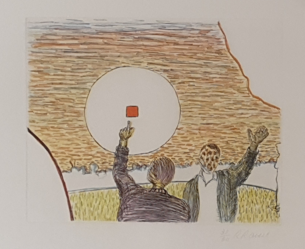 Zeer mooie kleurenets van de Belgische kunstenaar Roger Raveel. Het werk is gesigneerd en genummerd 33/60. Het werk is ingelijst Het werk wordt beschreven in het grafisch oeuvre onder nr. 255 op pagina 203. Unieke kans om dergelijk topwerk op de kop te kunnen tikken. De winnende bieder ontvangt bovendien een exemplaar van de driedelige boekenreeks 'Roger Raveel: Het overzicht.´ Zie laatste foto.