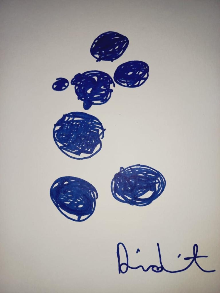 Artist: Damien Hirst (British, b. 1965) Title: Mickey Blue Support: Dessin colorée au feutre noir Size: Format A4 : 21x29,7cm Edition de 10 certificate of authenticity Collection privée Damien Hirst is one of the most popular artists of his generation, with projects such as the currency being a multi-million euro success.