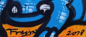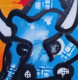 Hier een aantrekkelijk werk , in de zgn ,,BROOD "stijl , door ,,FABIAN " , heel herkenbaar , uitgevoerd met spuitbus en sjablonen , een werk dat op vele plaatsen , gemaakt met acrylverf , kleurrijk is .