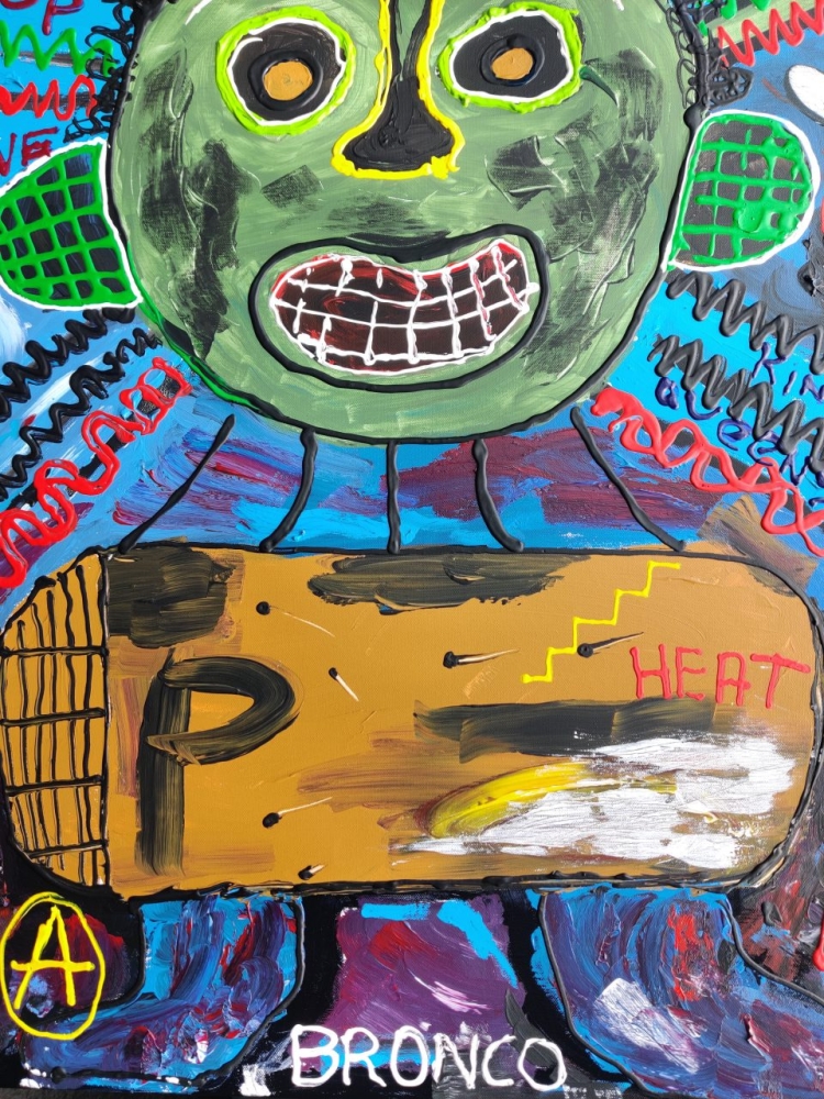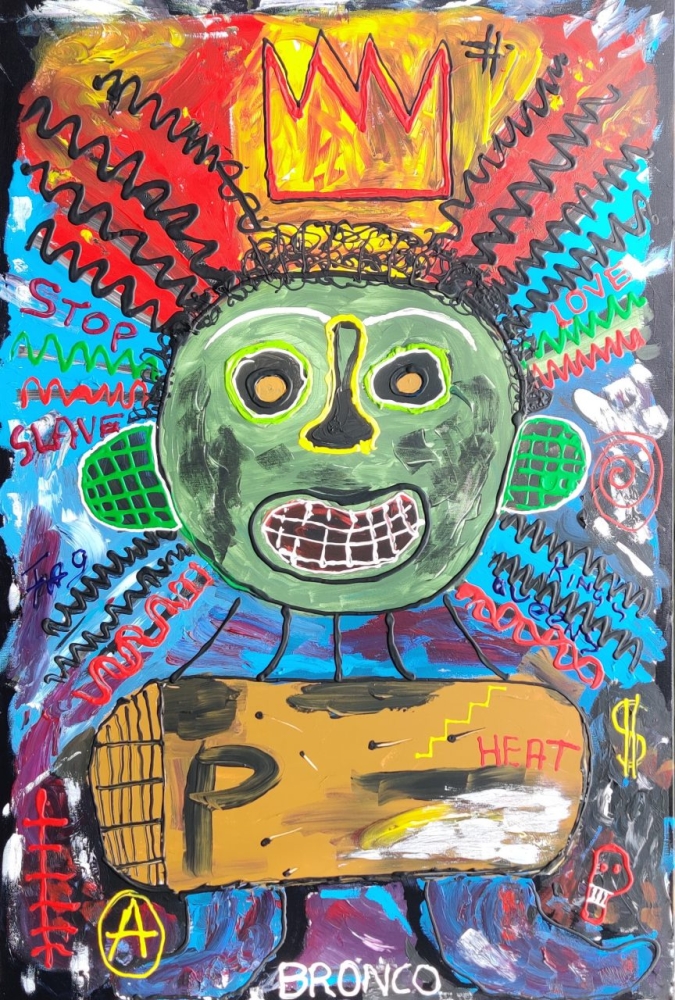 Jeffrey King, geboren in New York, was het 4e kind van late immigranten-ouders, die vanuit Ierland naar de U.S.A. geëmigreerd zijn in de laat 50e Jaren. Als tiener in New York, kwam hij vaak in het guggenheim museum aan het Central park, daar leerde hij geïnspireerd door de activiteiten van ANDY Warhol, maar speciaal door de aan Andy Warhol gelieerde, eerste geaccepteerde donkere “ Basquiat” die op veel plaatsen in lower-manhutten als street art op gebouwen-werkplaatsen en parken werden geplaatst door Basquiaat. Midden jaren 80, verhuisde hij naar Amsterdam, waar hij onlangs pas werd “ontdekt” door de huidige generatie, en krijgt nu een verlate reactie op zijn door genoemde kunstenaars stijl. Hij brengt zijn werken onder zijn nick-name op de markt en wel als “BRONCO”