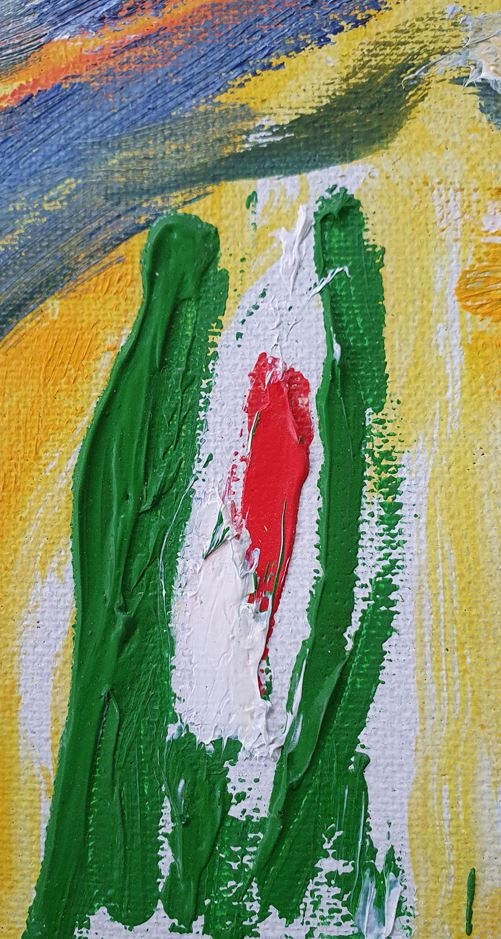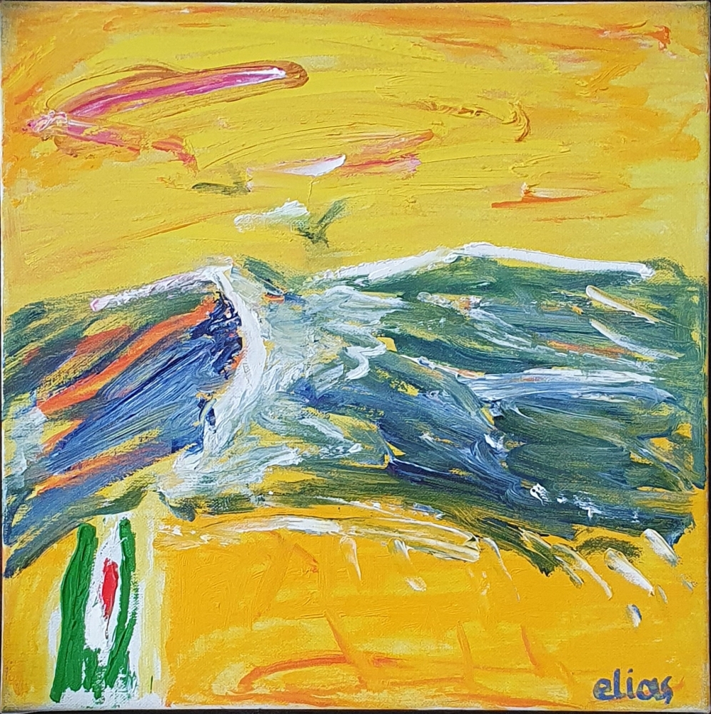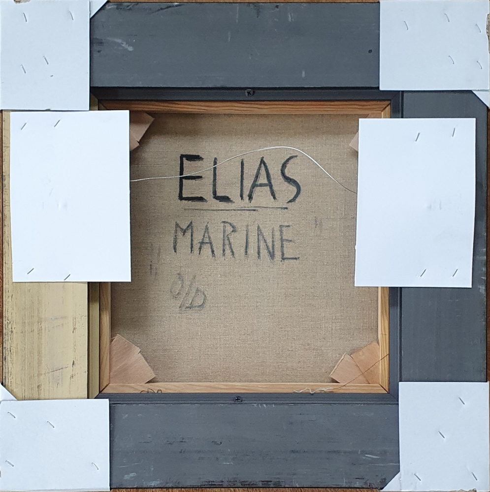 Zeer leuk en kleurrijk origineel werkje van de Belgische kunstenaar Etienne Elias. Het werk is mooi ingelijst 'in een bakje'. Het werk is vooraan gesigneerd. Het werk is achteraan getiteld en gesigneerd.