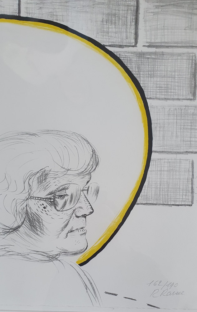 Mooie kleurenlithografie van de Belgische kunstenaar Roger Raveel met een beeltenis van zijn muze Zulma. Het werk is gesigneerd in potlood en genummerd 162/190. Het werk is ingelijst. Het werk wordt beschreven in het grafisch oeuvre onder nummer 64 op pagina 82.