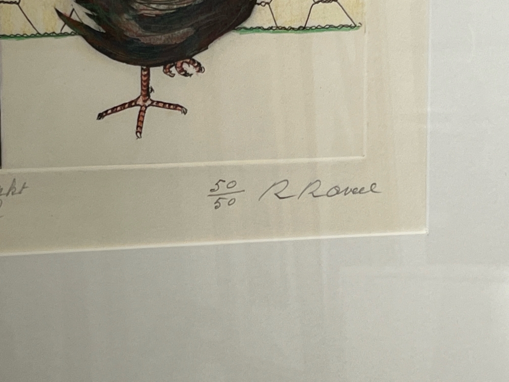 Zeer mooie zwart-wit ets van de Belgische kunstenaar Roger Raveel. Het werk werd gemaakt op 50 exemplaren. Slechts enkele exemplaren werden met de hand ingekleurd. Het aangeboden werk is er een van hetgeen dit werk uniek maakt. Het werk verkeert in goede staat. Het werk is ingelijst met passe-partout. Het werk wordt beschreven in het grafisch oeuvre nr. 32C.4 op pagina 61. De winnende bieder ontvangt gratis een exemplaar van de driedelige boekenreeks 'Roger Raveel - Het Overzicht'.