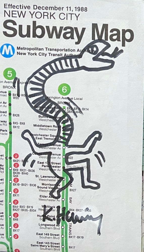 Keith Haring  - Originele Tekening op Subway Map