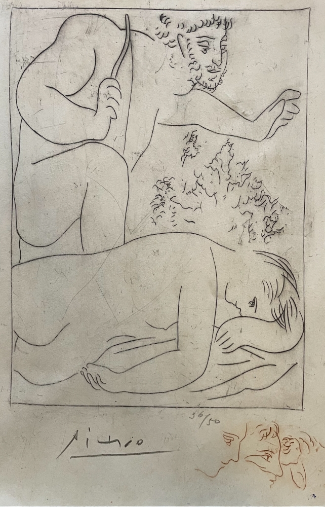 Gesigneerde ets van Picasso's "Les métamorphoses d'Ovide", een verzameling etsen. Uitgebracht in 1967 met rechten van SPADEM Paris 1967. Exemplaar in goede staat. Met de hand gesigneerd door Pablo Picasso