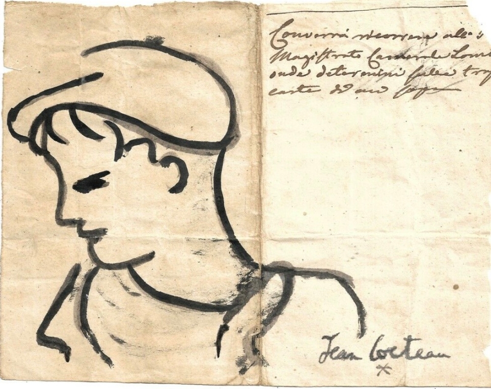 originele tekening met tekst in Oost Indische inkt op (oud) papier. Uit erfenis, aangekocht circa 1960/1965 bij Galerie Lucie Weill Parijs. Nooit ingelijst, goede bewaring, papier met typische ouderdom verschijnselen en plooien, deze zijn origineel en doen geen afbreuk aan het werk. afmetingen: 15,5cm x 20cm